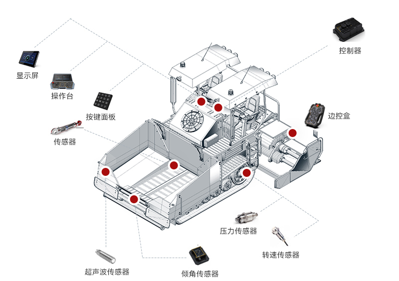 多宝电竞智能摊铺机解决方案整合了感知技术、自动控制系统和数据分析算法,实现了摊铺机高度智能化操作。通过实时获取路面信息和实时调整施工参数,使摊铺机操作更加精准、高效和可靠。